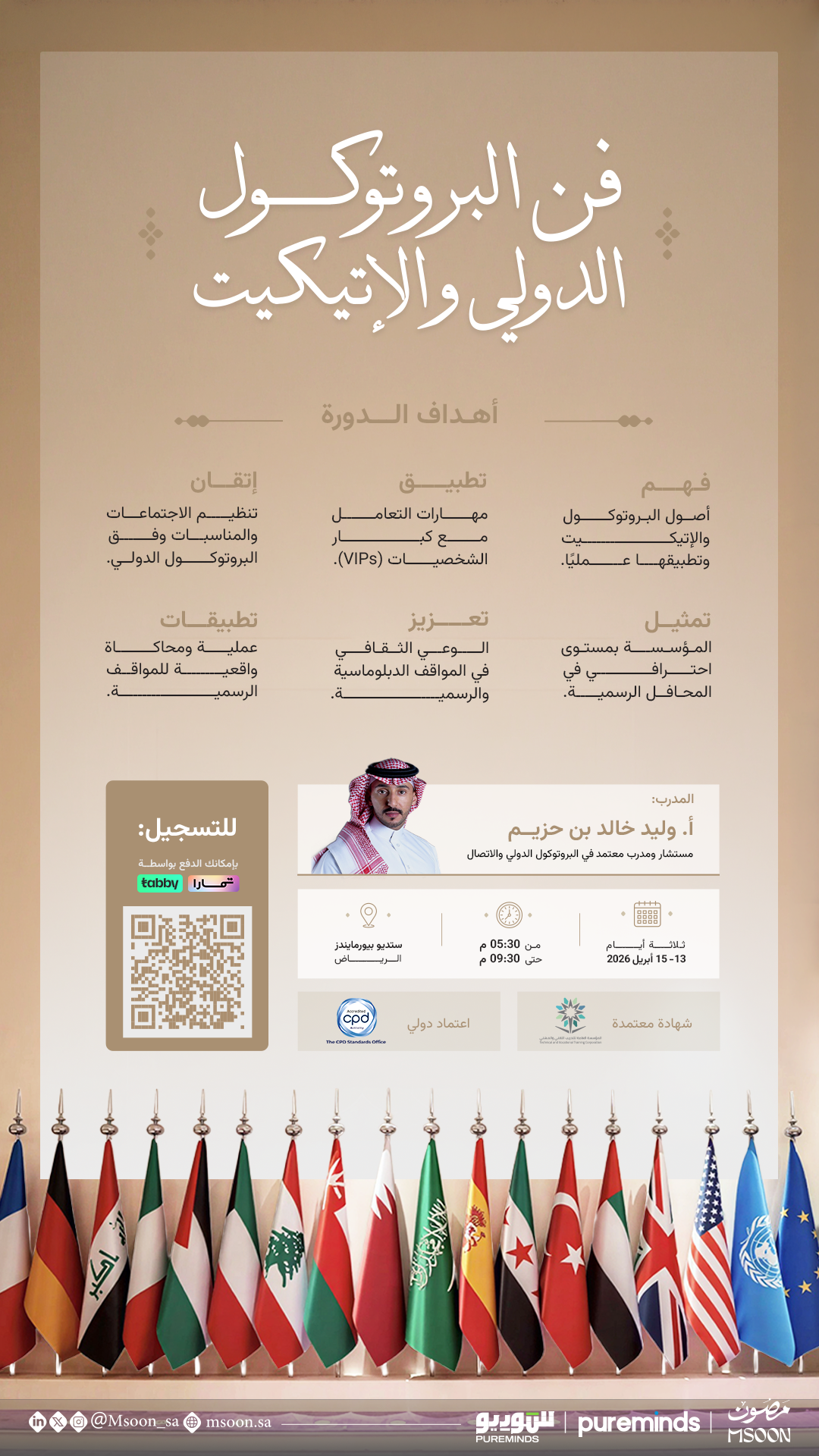 Course Overview An immersive program designed to equip participants with the knowledge and skillset to master international protocol and etiquette in diverse formal settings. It emphasizes VIP engagement, high-level meeting organization, and ceremonial conduct that bridges cultures with precision and grace.